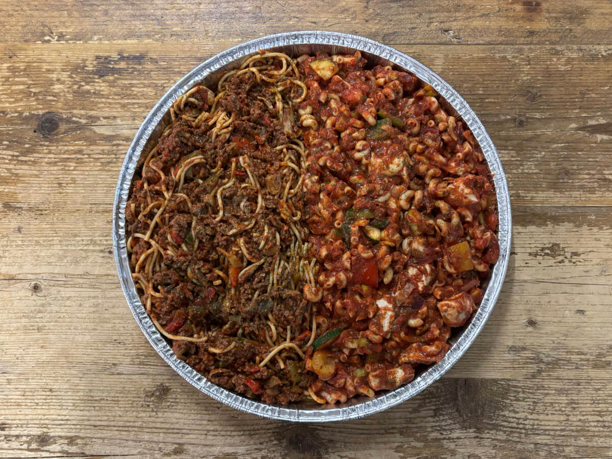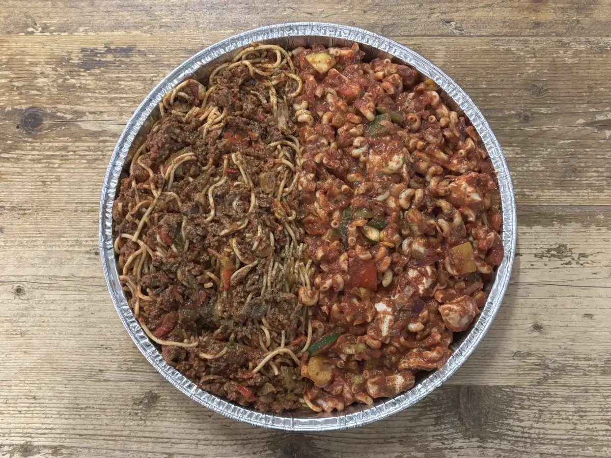 - Inhoud: gevuld met spaghetti en macaroni